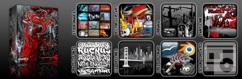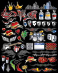 Spay Cans, Caps, Flames, 3D Graffiti, Tribals, Wings, scrolls