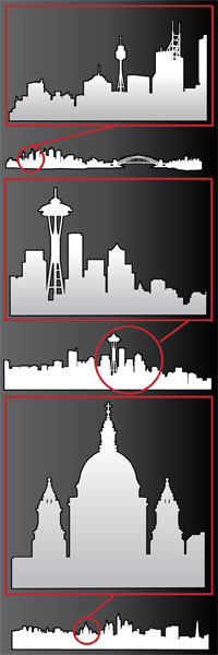 skyline, cityscape, horizon, cities, metropolis, vector city, inner city, downtown, stencil, society, civilization, buildings, skyscrapers, icons, landmark
